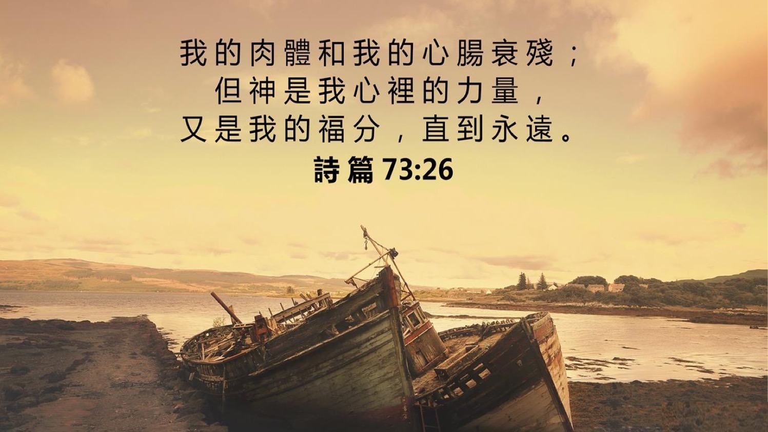 我的肉体和我的心肠衰残;但神是我心里的力量,又是我的福分,直到永远。【诗篇73:26】