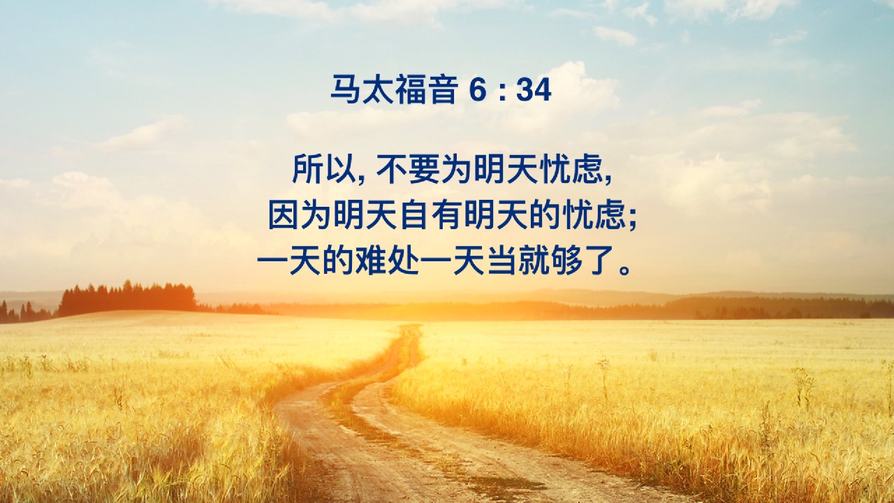 所以,不要为明天忧虑,因为明天自有明天的忧虑;一天的难处一天当就够了。【马太福音6:34】