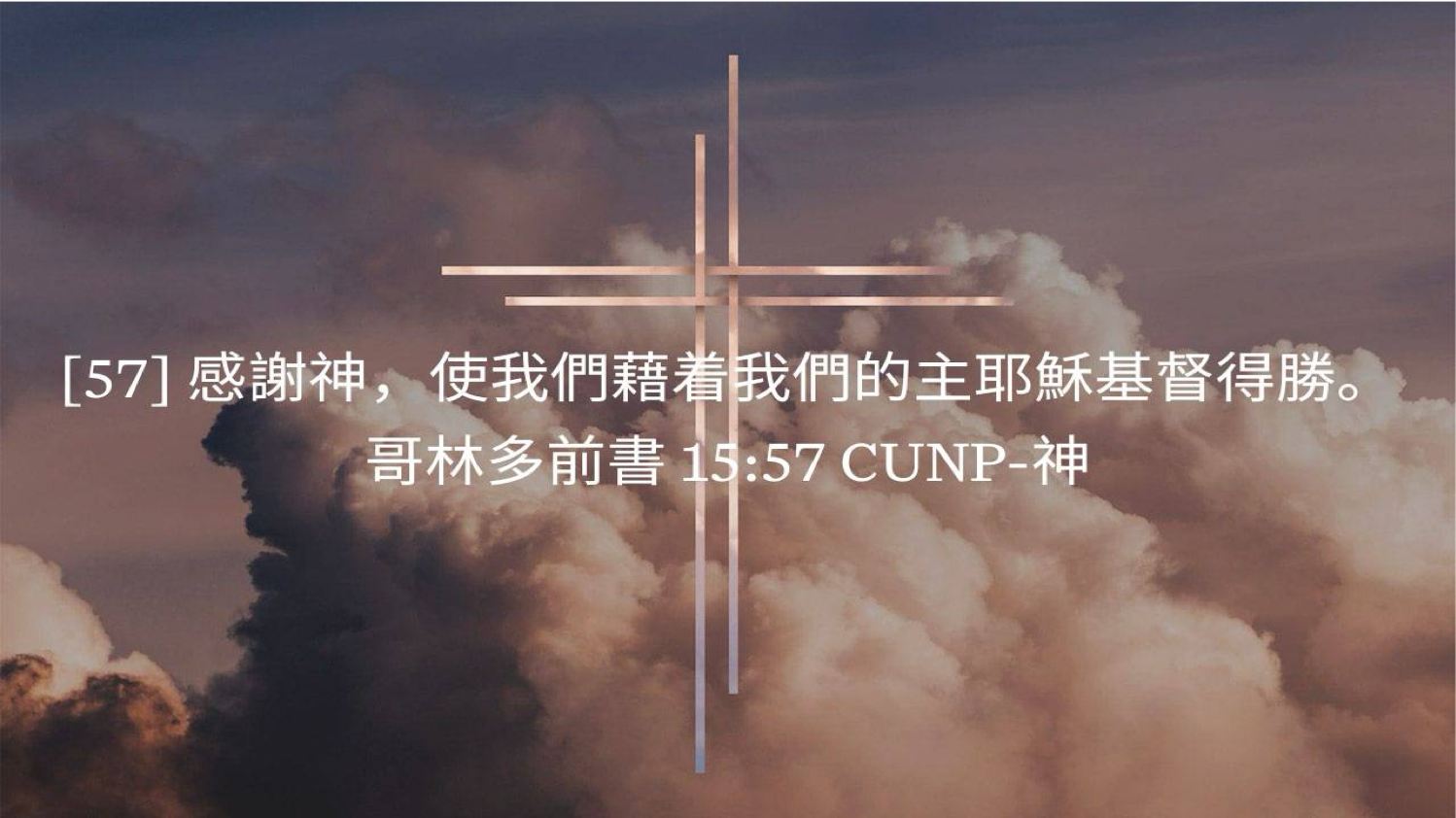 感谢神,使我们藉着我们的主耶稣基督得胜。【哥林多前书15:57】