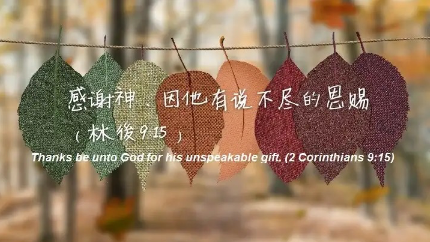 感谢神!因祂有说不尽的恩赐。【哥林多后书9:15】