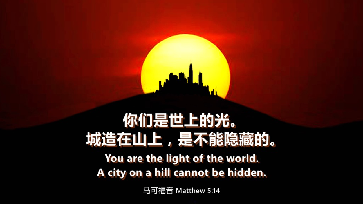 你们是世上的光。城造在山上是不能隐藏的。【马太福音5:14】