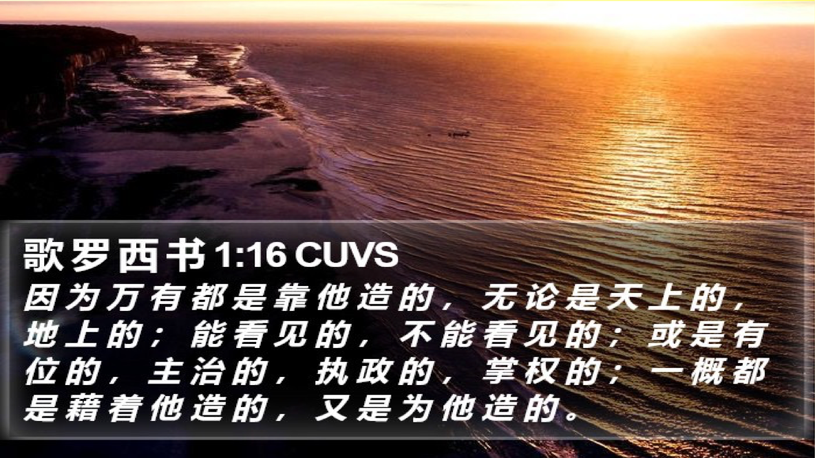 万有都是靠祂造的,无论是天上的,地上的;能看见的,不能看见的;或是有位的,主治的,执政的,掌权的;一概都是藉着祂造的,又是为祂造的。【歌罗西书 1:16】