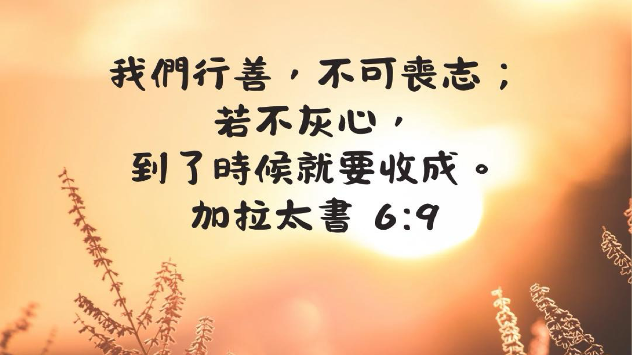 我们行善,不可丧志;若不灰心,到了时候就要收成。【加拉太书 6:9】