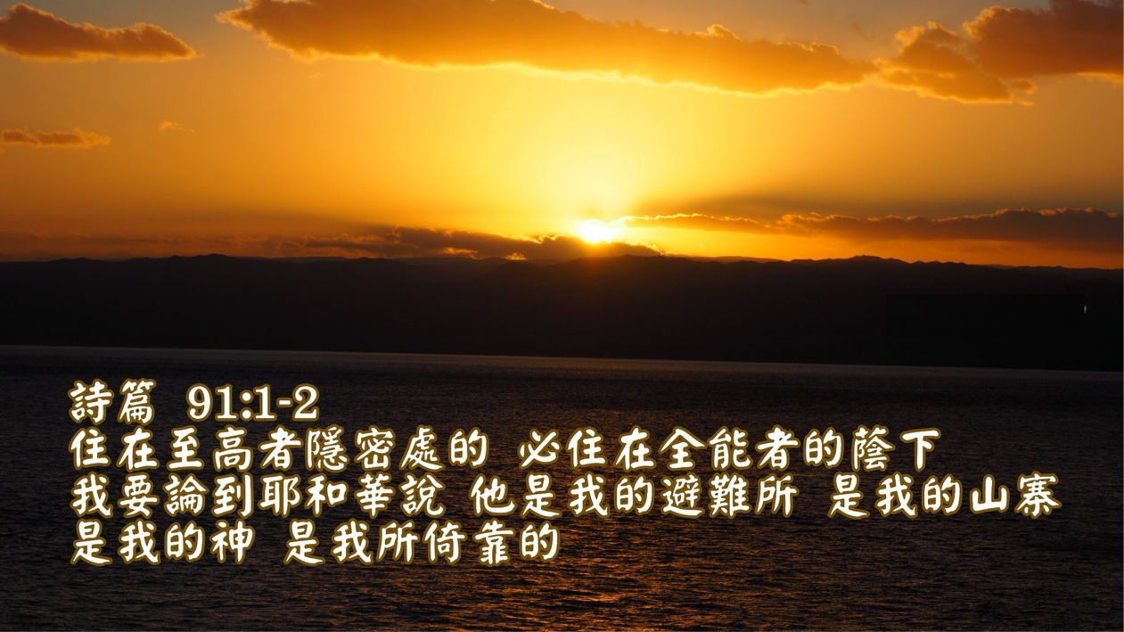 住在至高者隐密处的,必住在全能者的荫下。我要论到耶和华说:祂是我的避难所,是我的山寨,是我的神,是我所倚靠的。【诗篇91:1-2】
