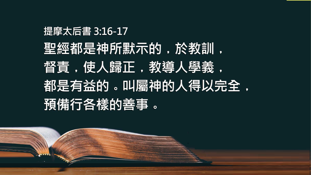 圣经都是神所默示的,于教训、督责、使人归正、教导人学义都是有益的,叫属神的人得以完全,预备行各样的善事。【提摩太后书3:16-17】