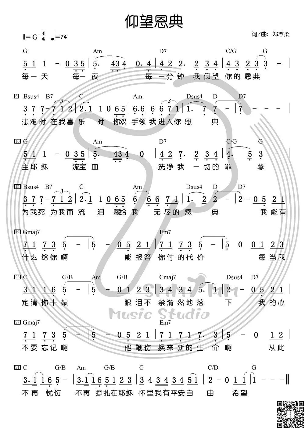 每一天 每一夜 每一分钟 我仰望你的恩典 患难时 在我喜乐时 你双手领我进入你恩典 主耶稣你宝血 洗净我一切的罪孽 为我死 为我而流泪 赐给我无尽的恩典 【副歌】: 我能有什么给你啊 能报答你付的代价 每当我定睛你十架 眼泪不禁潸然地落下 我的心不要忘记啊 他鞭伤换来新的生命啊 从此不再忧伤不再挣扎 在耶稣怀里 我有平安自由希望