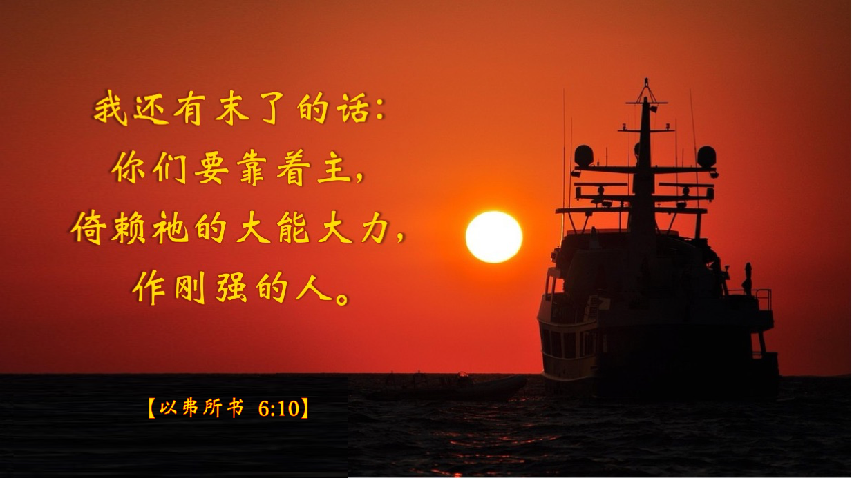 我还有末了的话:你们要靠着主,倚赖祂的大能大力,作刚强的人。【以弗所书6:10】