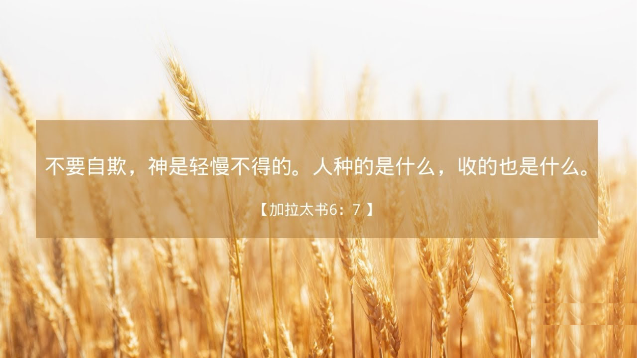 不要自欺,神是轻慢不得的。人种的是什么,收的也是什么。【加拉太书6:7】