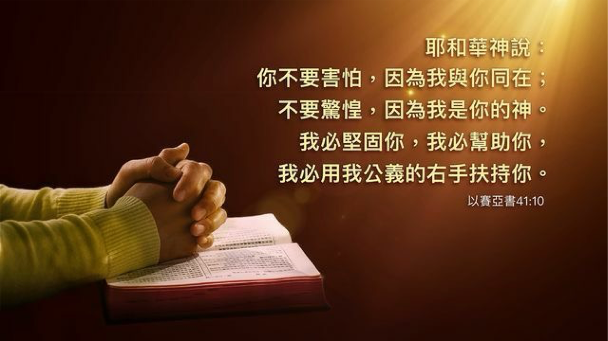 你不要害怕,因为我与祢同在;不要惊惶,因为我是祢的神。我必坚固祢,我必帮助祢;我必用我公义的右手扶持祢。【以赛亚书41:10】