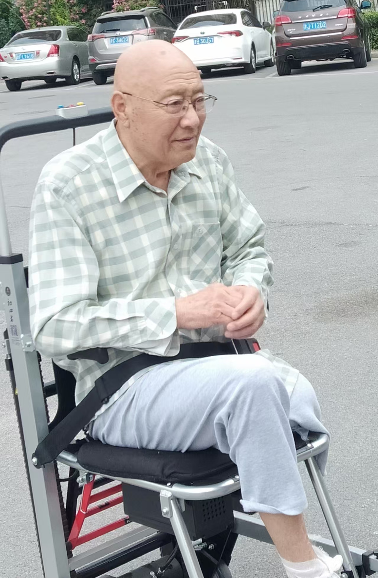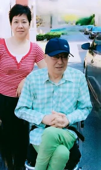 (图片为推着轮椅带父亲在小区散步)